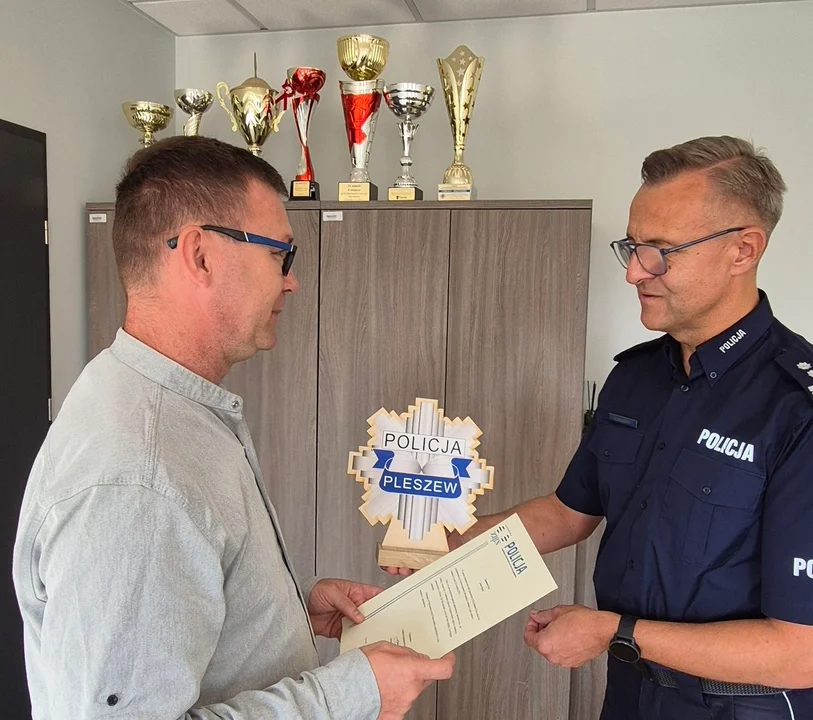 Kilka dni temu mł. insp. Paweł Sobański, zastępca komendanta powiatowego policji w Pleszewie, podziękował panu Arturowi za wzorową postawę obywatelską.