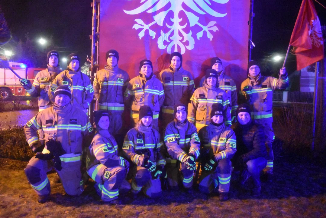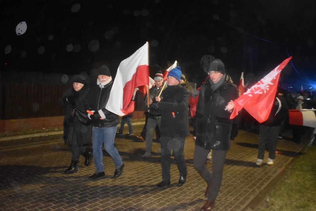 Strażacy, członkowie młodzieżowych drużyn pożarniczych, radni, sołtysi i mieszkańcy z pochodniami, biało-czerwonymi flagami w rękach wyruszyli z ulicy Słonecznej w kierunku Placu 3 Maja. Tam przygotowano specjalną konstrukcję, na której rozwieszono okazałą flagę powstańczą, odpalono również race. Trasę marszu zabezpieczali strażacy oraz policja.