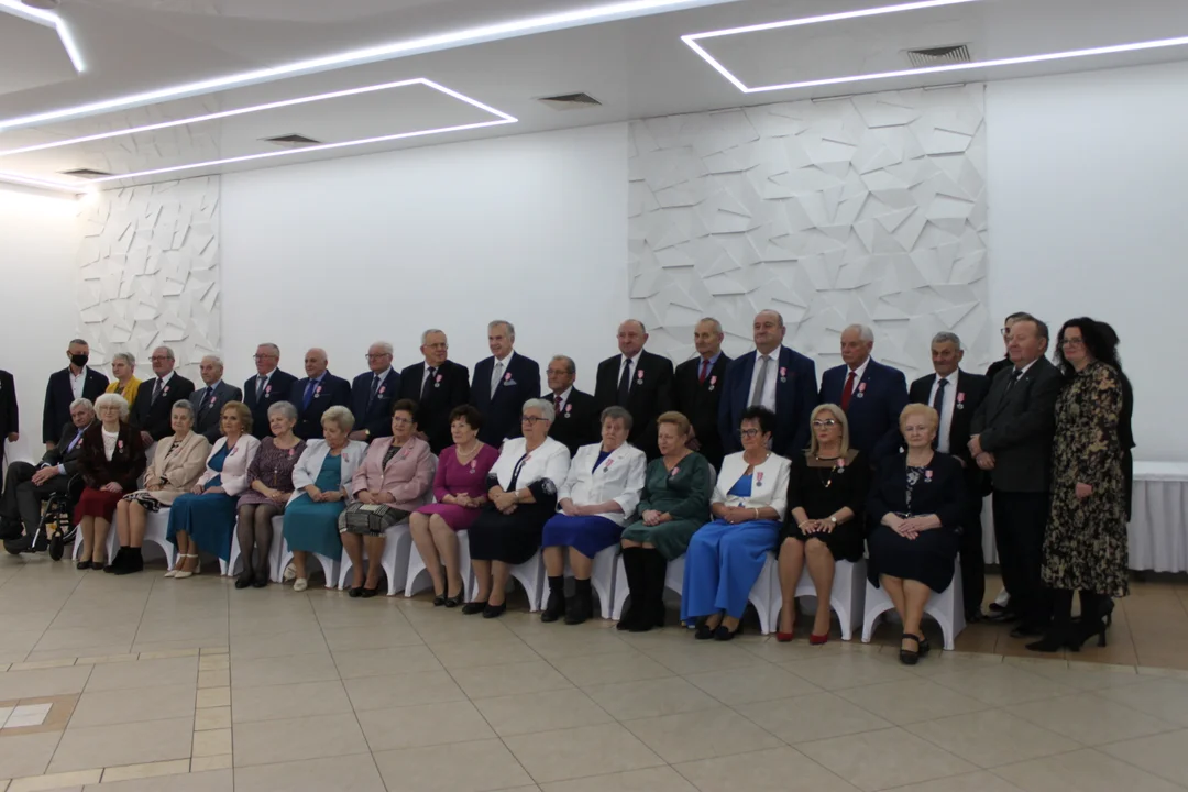 Odznaczenia 21 parom ( w sumie jubileusz świętowały 24 małżeństwa, nie wszystkim udało się jednak dotrzeć na uroczystość) wręczył burmistrz gminy Jarosław Pietrzak, podkreślając, jak ważną rolę w społeczeństwie i rodzinie pełnią pary z tak długim stażem.