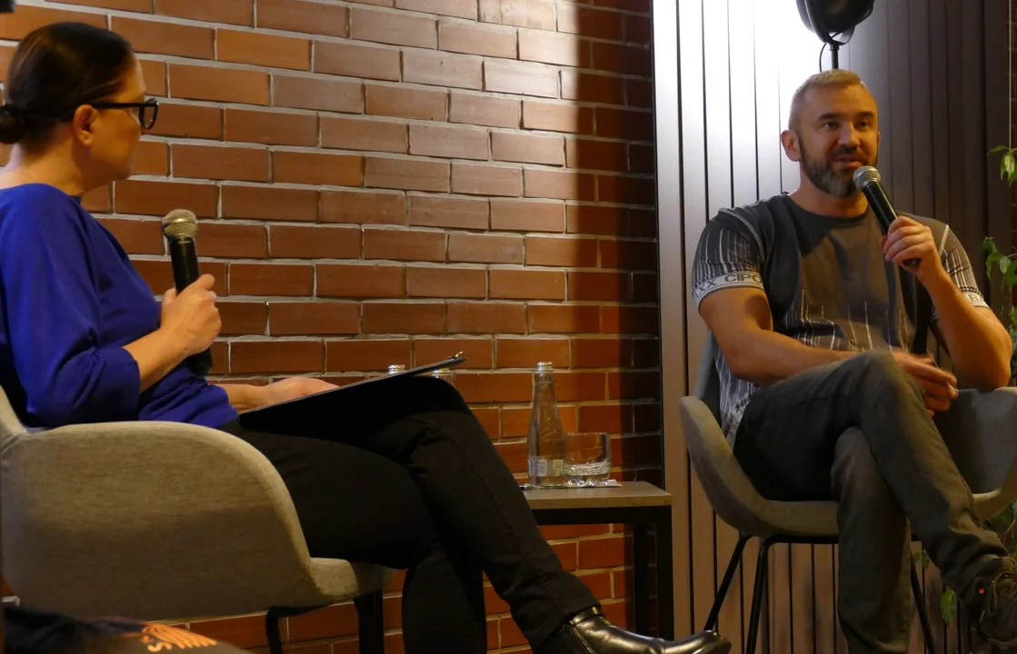 Spotkanie z Przemysławem Piotrowskim prowadziła Ewa Andersz - Wanat z pleszewskiej biblioteki.