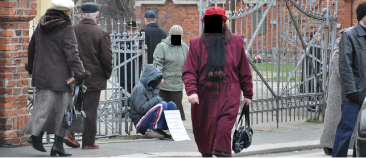 Mijają kolejne minuty, które wydają mi się „wiecznością”. Na razie żadnej reakcji. Tylko te spojrzenia. Niektóre wręcz pełne pogardy. Odruchowo zaciągam szalik pod same oczy. Teraz już wiem, co czują bezdomni lub biedni zbierający w ten sposób pieniądze na jedzenie. Ręce trzęsą mi się coraz bardziej.