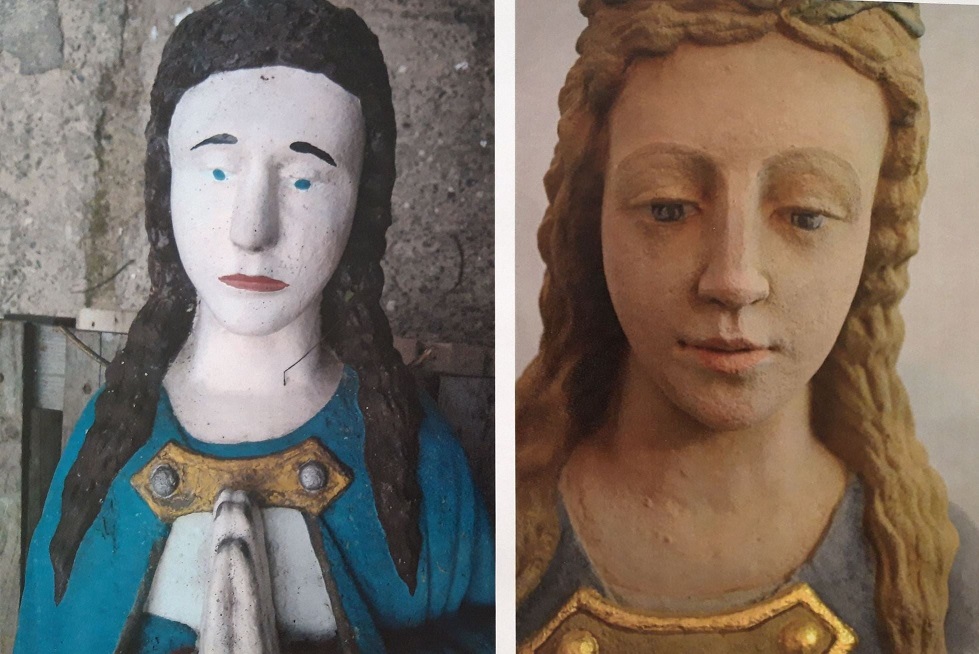 Po lewej - figura przed renowacją. Po prawej - obecny wygląd