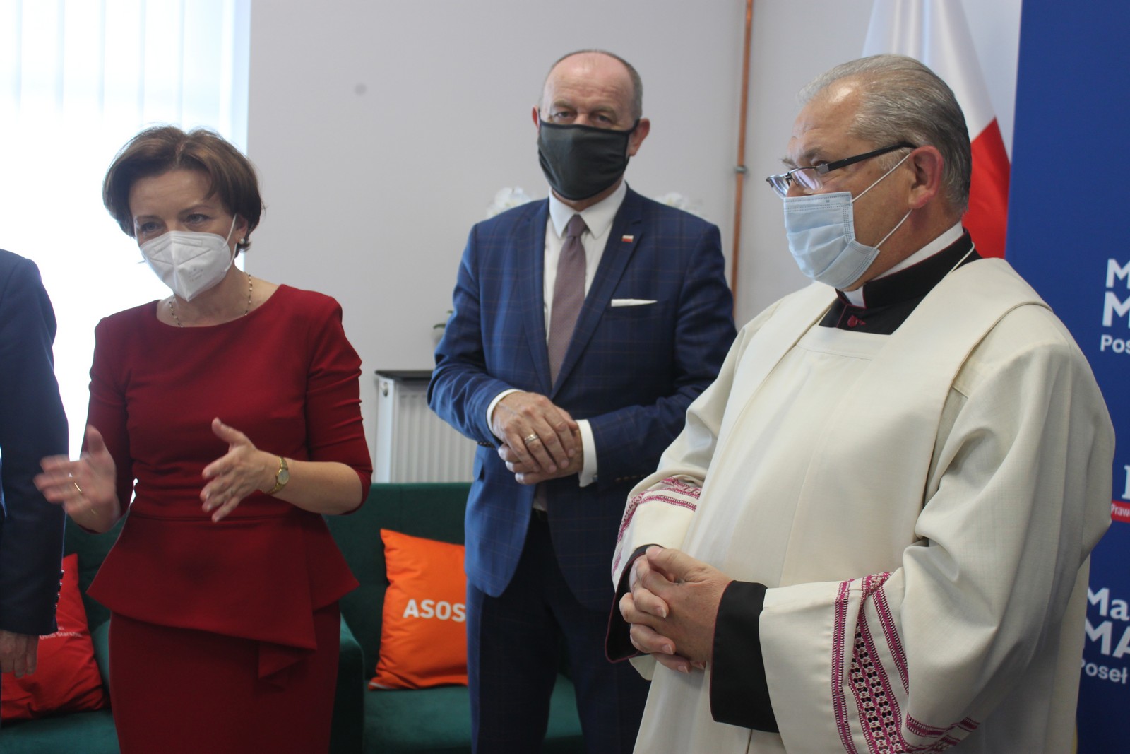 Nowe biuro poświęcił ksiądz prałąt Henryk Szymiec, proboszcz pleszewskiej parafii farnej. Duchowny dziękował politykom za ich pracę i gratulował rządowego projektu - Nowy Ład.
