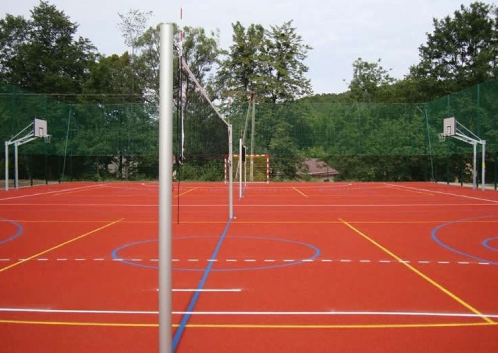 Wymiary nowego boiska to: 21 x 34 m. Teren wokół będzie utwardzony kostką brukową oraz obsadzony zielenią. Boisko będzie miało charakter wielofunkcyjnego czyli posłuży do gry w piłkę nożną, ręczną, koszykówkę i siatkówkę. Całość będzie oświetlona.