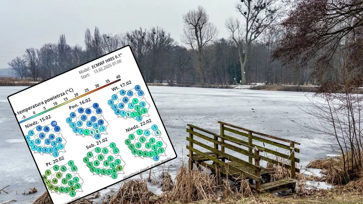 Piatek 13 lutego 2026 to jeszcze stosunkowo łagodna aura z temperaturami rzędu 5–6°C. Jednak już od soboty (14 lutego 2026) zacznie napływać do nas chłodniejsze powietrze, a termometry w regionie pokażą od 1°C do 2°C. Niedziela 15 lutego 2026 będzie najchłodniejszym dniem weekendu. Maksymalna temperatura w dzień spadnie w okolice -1°C do -3°C.