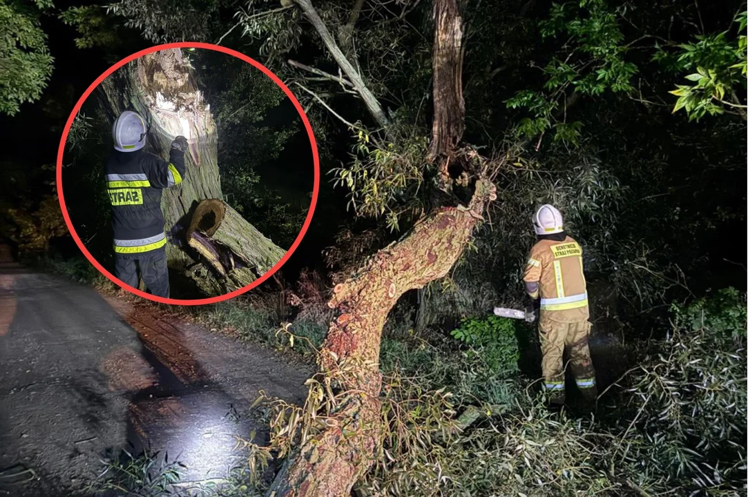Przybyli na miejsce strażacy szybko uporali się z przeszkodą. Jak widać na zdjęciach ilustrujących akcję - kierowcy przejeżdżający tego wieczoru przez wspomnianą drogę mieli dużo szczęścia.