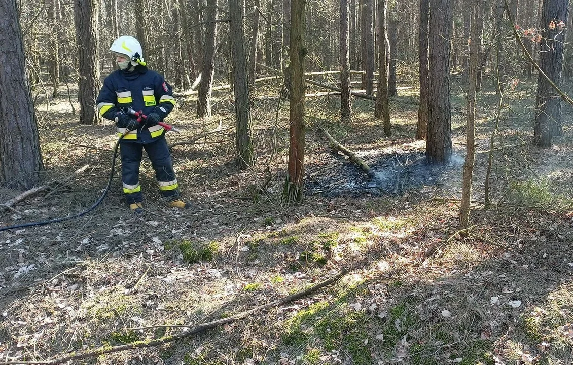 Jak informują strażacy, po przybyciu na miejsce zastali palącą się ściółkę przy jednym z drzew w lesie, około dwóch metrów od skraju drogi. Na szczęście sytuacja została szybko opanowana.