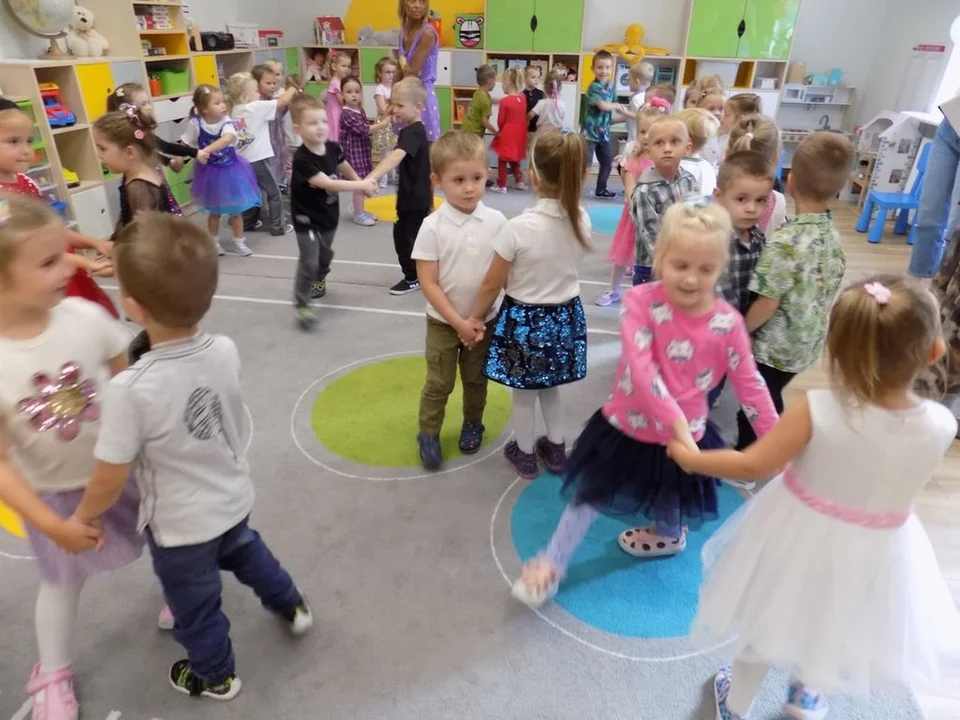 Przedszkolaki rozpoczęły świętowanie w piatek, 19 września, radosnymi powitaniami, które wprowadziły wszystkich w doskonały nastrój. Następnie dzieci bawiły się na dyskotece i tańczyły przy wesołych rytmach muzyki disco. W programie wydarzenia w przedszkolu "Słoneczne" w Pleszewie nie zabrakło konkursów oraz zabawy z kolorową chustą animacyjną.
