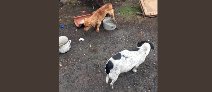 Jeden z nich uwięziony w kojcu jest skrajnie wychudzony. Jego rodzina winą za stan zwierząt obarcza nowego właściciela gospodarstwa, na którym znaleziono czworonogi.