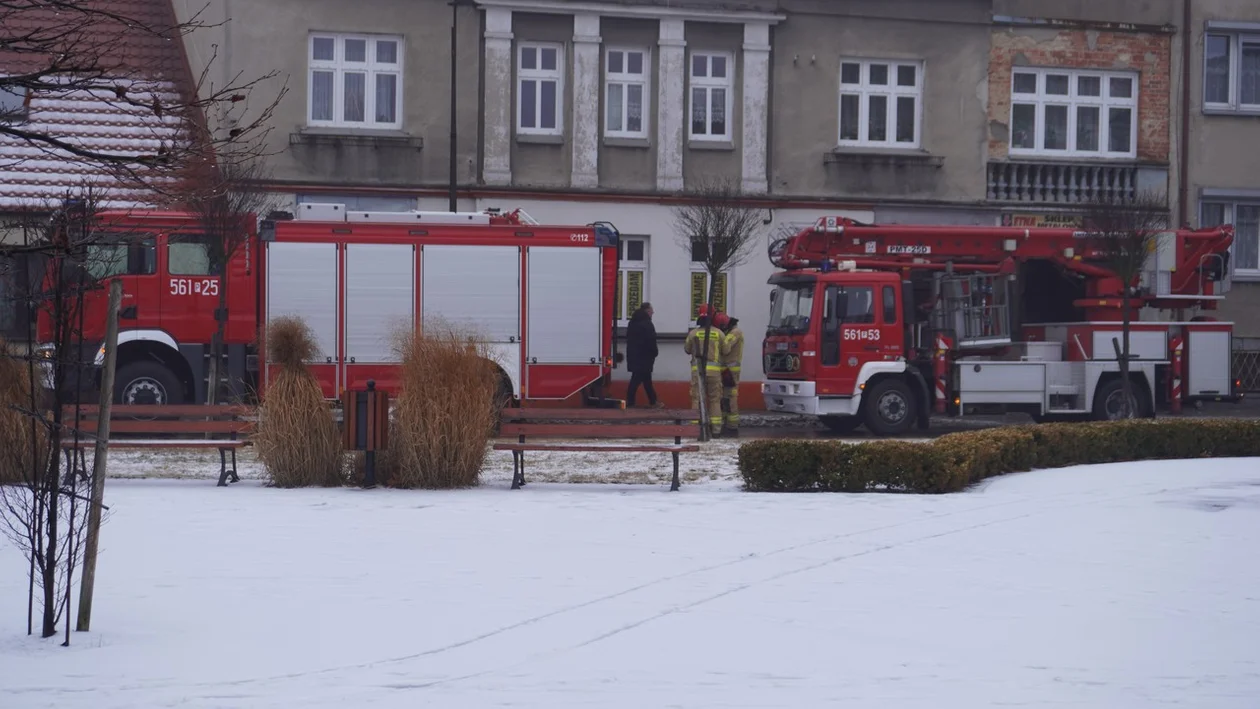 Do pożaru doszło w budynku mieszkalnym przy Placu Powstańców Wlkp. w Pleszewie dziś, 6 lutego 2026, tuż przed godz. 10.00.