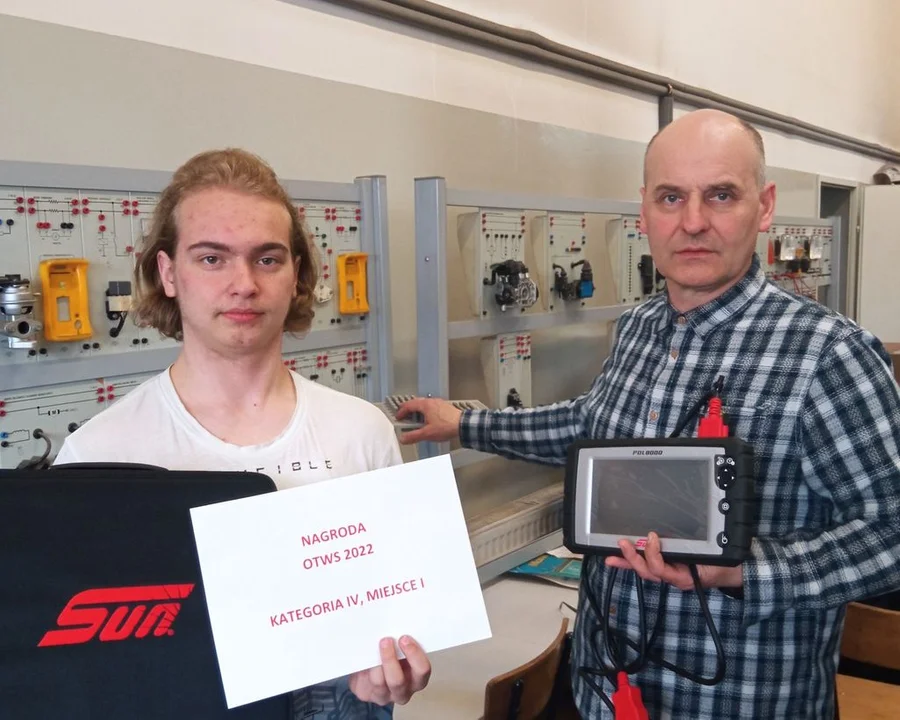 - Cyprian zajął I miejsce w Ogólnopolskim Turnieju Wiedzy Samochodowej w kategorii "Czujniki w pojazdach samochodowych" zdobywając tym samym nagrodę rzeczową - Tester samochodowy "SUN PDL" - 8000 o wartości ok. 17 tysięcy złotych – informują nauczyciele z ZST w Pleszewie.