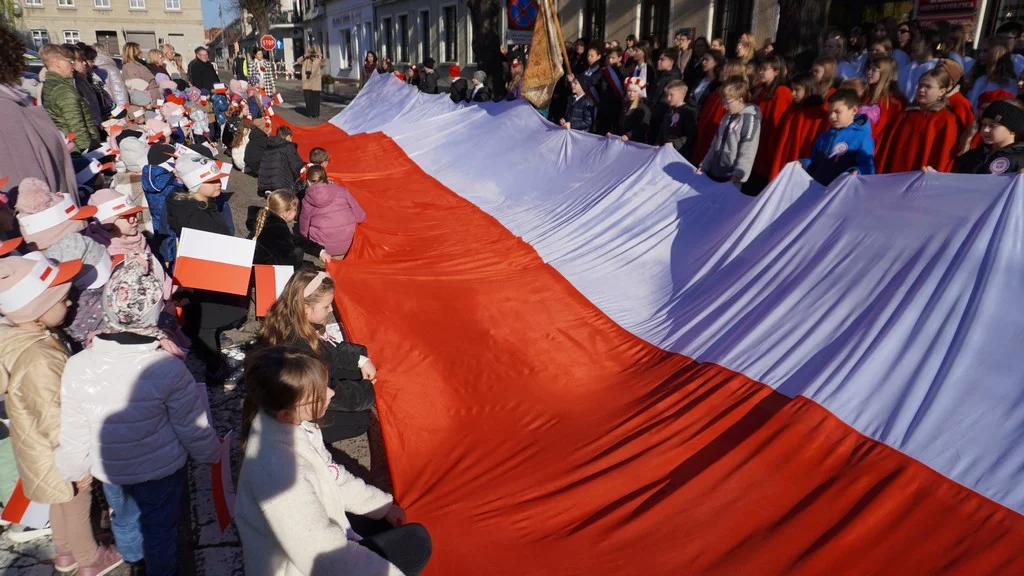 Przedszkolaki, uczniowie i nauczyciele z Zespołu Szkół Publicznych w Dobrzycy dali piękny dowód pamięci i zorganizowali historyczny, szósty już przemarsz z olbrzymią, biało - czerwoną, flagą przez miasto.