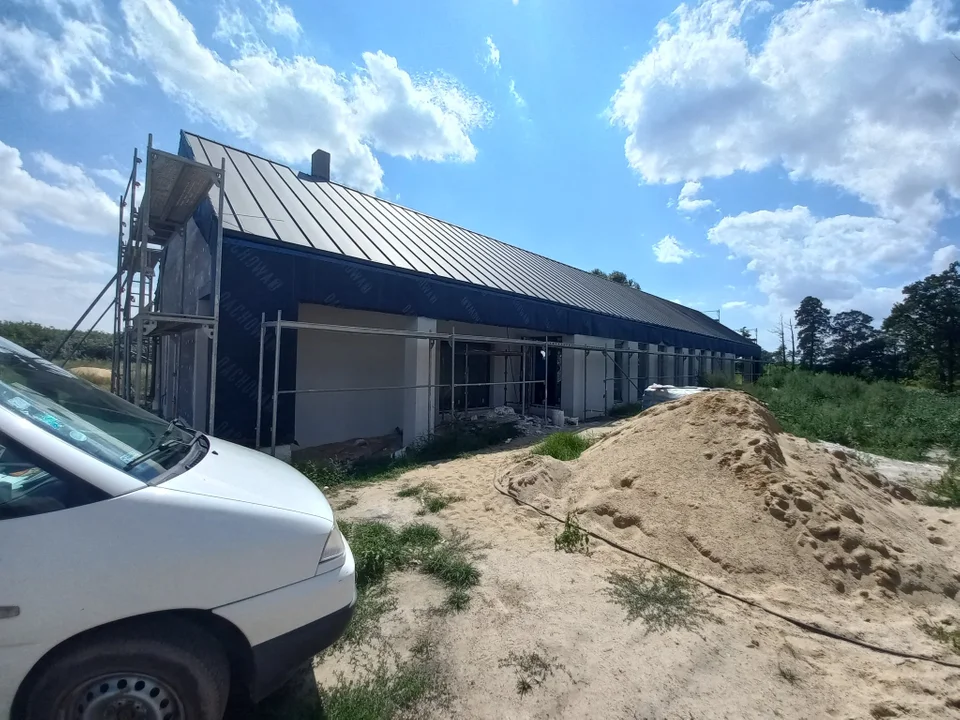 Jak informuje burmistrz - mimo wakacji i sezonu urlopowego - prace na budowie sali wiejskiej w Karminie trwają cały czas.