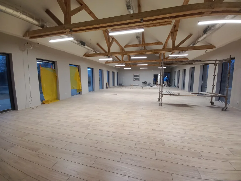 Budowa sali wiejskiej w Karminie wkracza w decydującą fazę. Trwają już prace wykończeniowe, a zgodnie z planami cała inwestycja ma zostać oddana do użytku w tym roku.