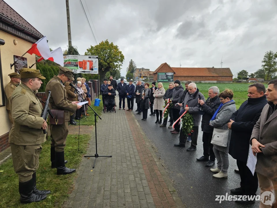 Uroczystość w Koźmińcu zakończyło złożenie wieńców i kwiatów pod tablicą pamiątkową. Gminę Dobrzyca reprezentowali m.in. burmistrz - Jarosław Pietrzak, radna - Renata Filipiak oraz sołtys Koźmińca - Michał Lis.