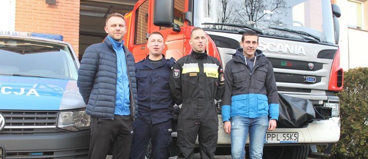 Mariusz Rybarczyk, sierż. szt. Piotr Przybylski, st. sekc. Mateusz Grabarek i Wojtek Bociański. To oni uratowali życie koledze z boiska