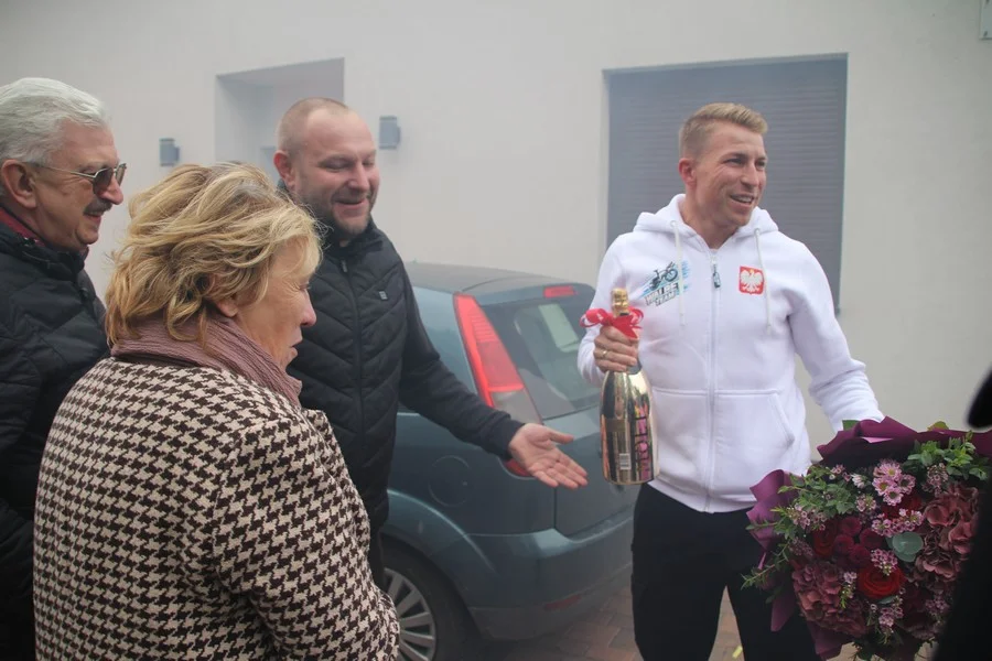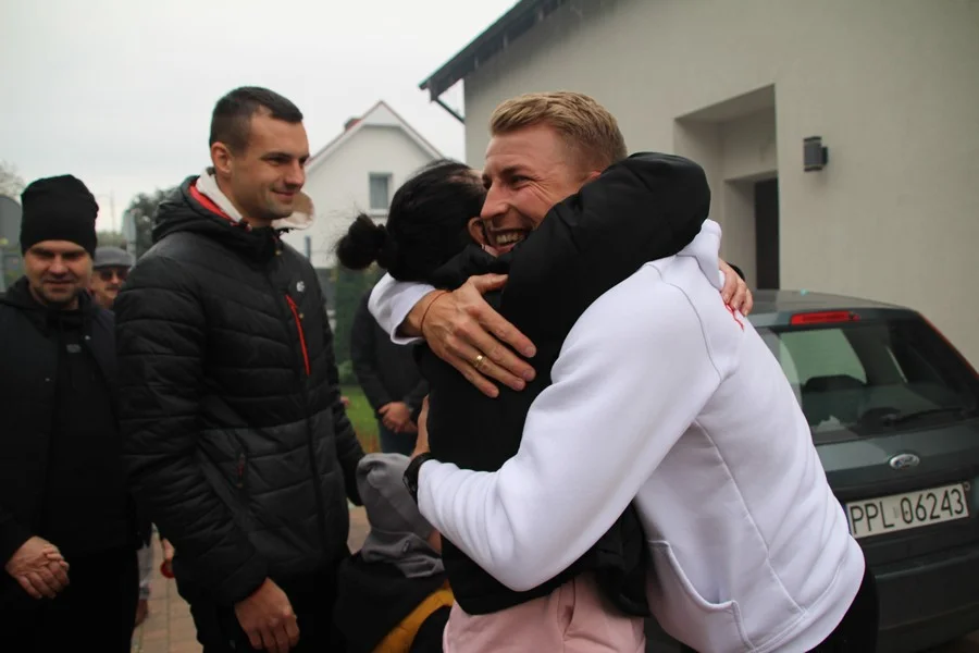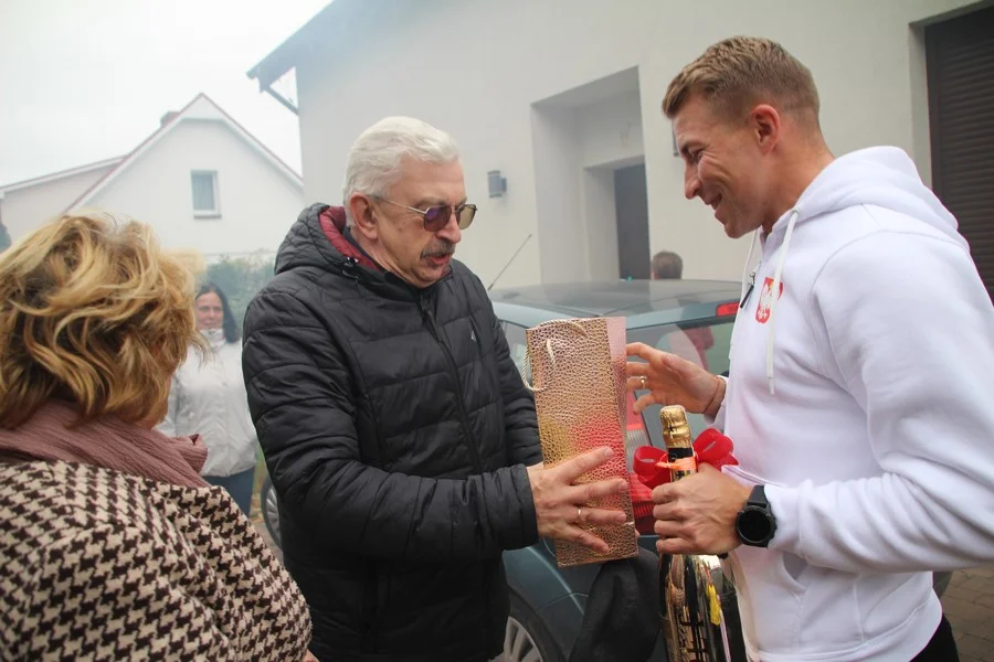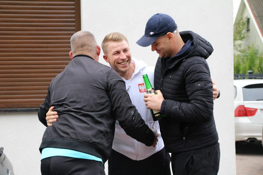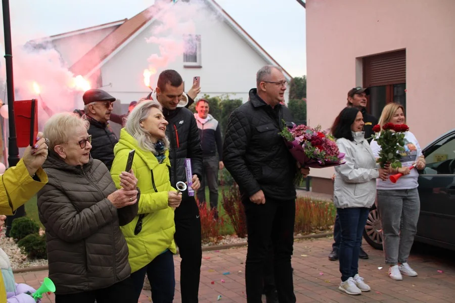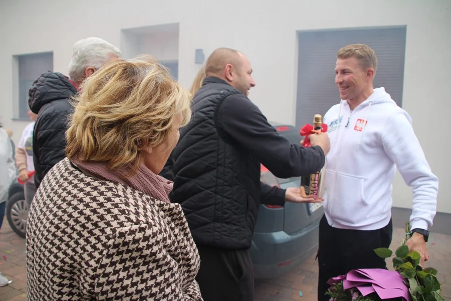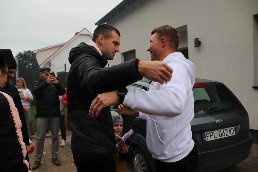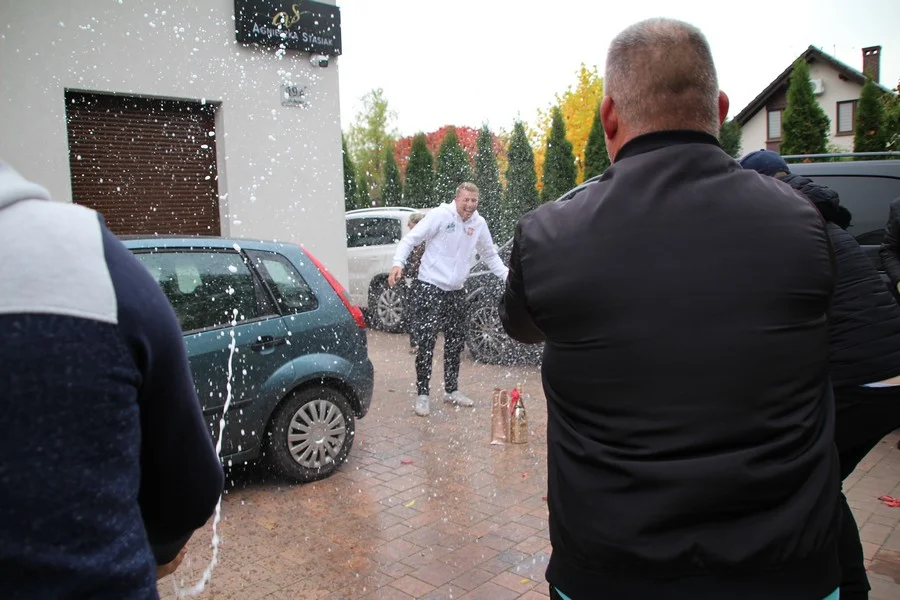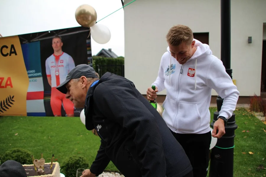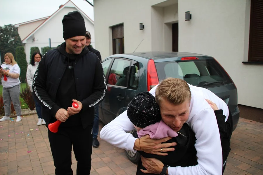 Zaskoczenie było totalne – sportowca powitały transparenty, głośne okrzyki, tort i gromkie "Sto lat"!