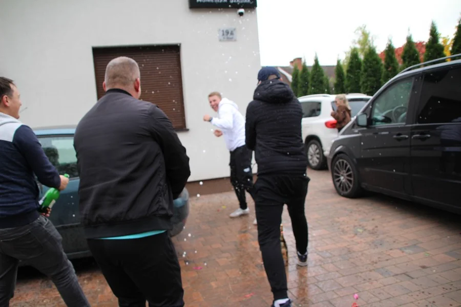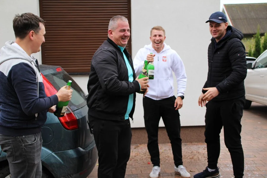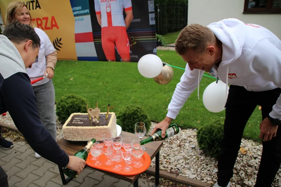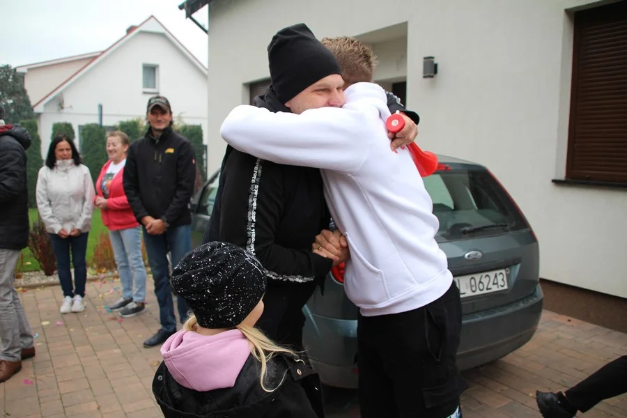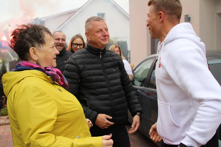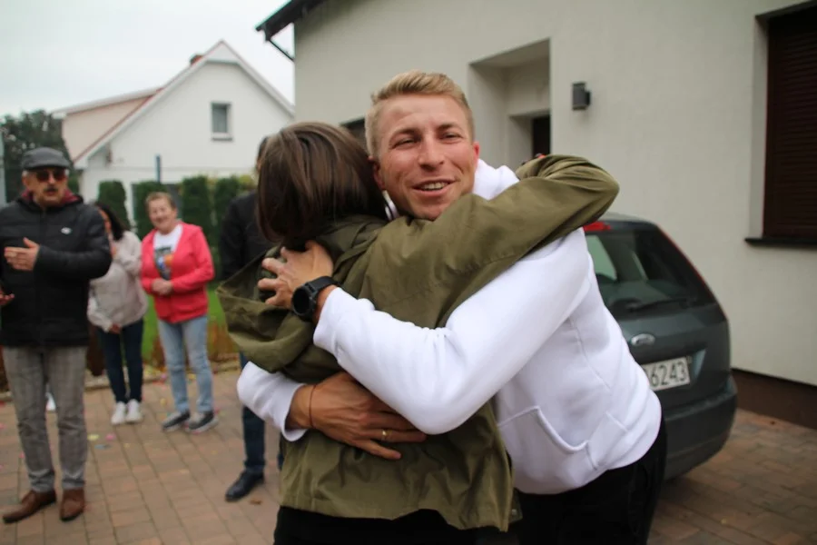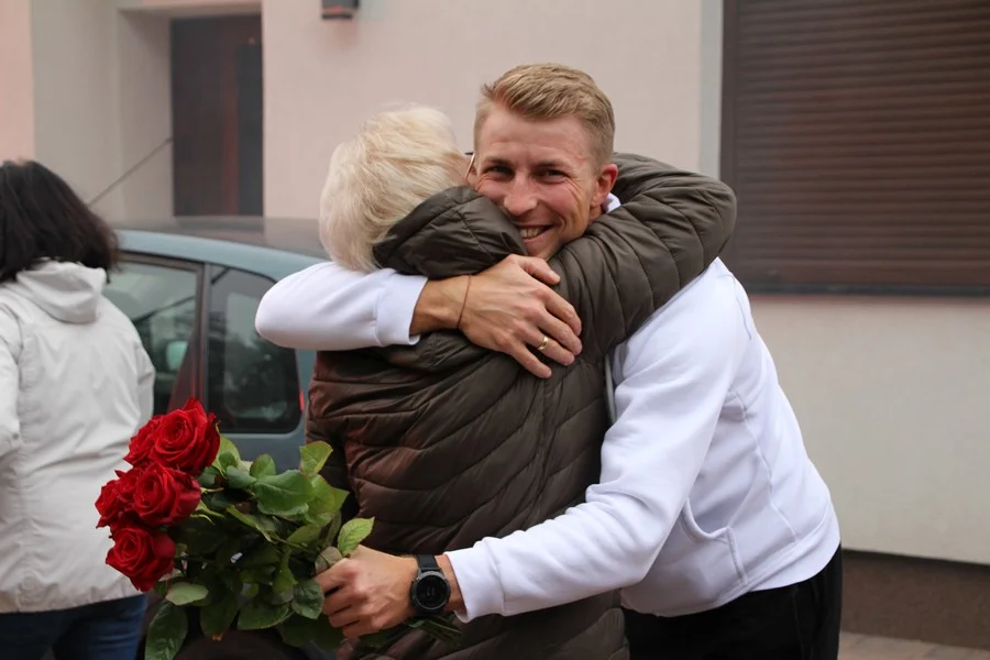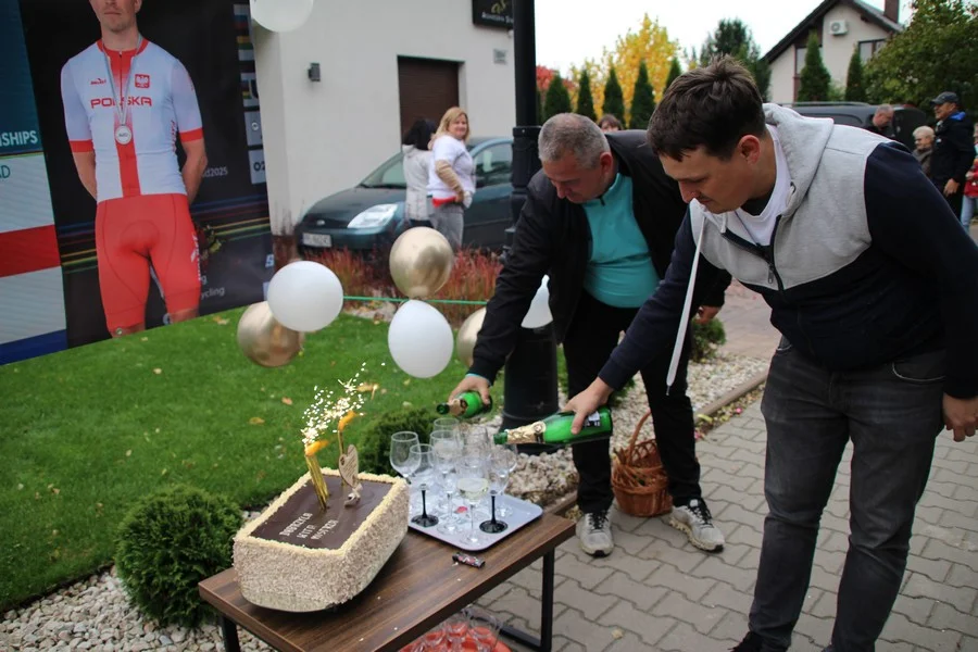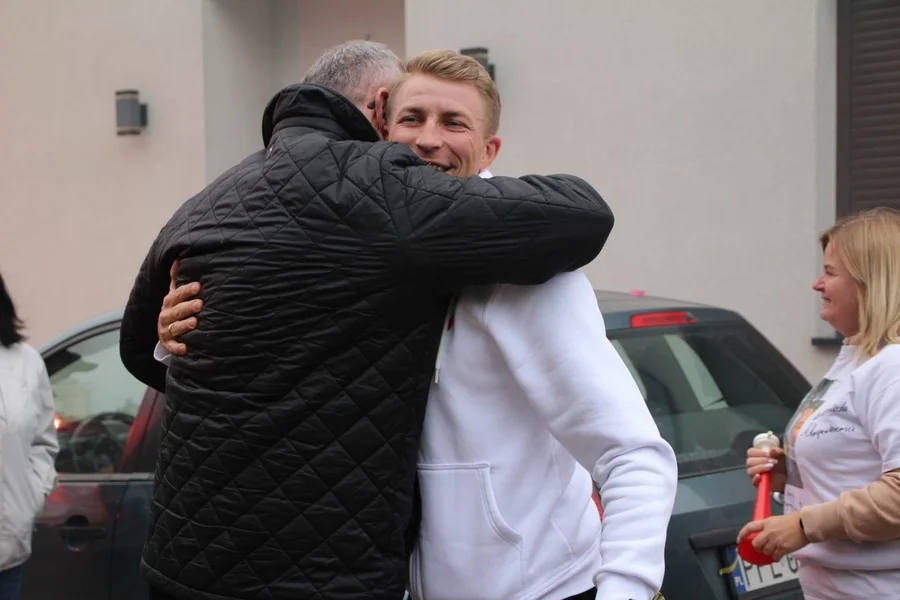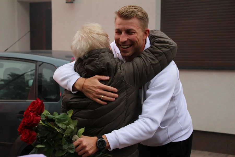 Zaskoczenie było totalne – sportowca powitały transparenty, głośne okrzyki, tort i gromkie "Sto lat"!