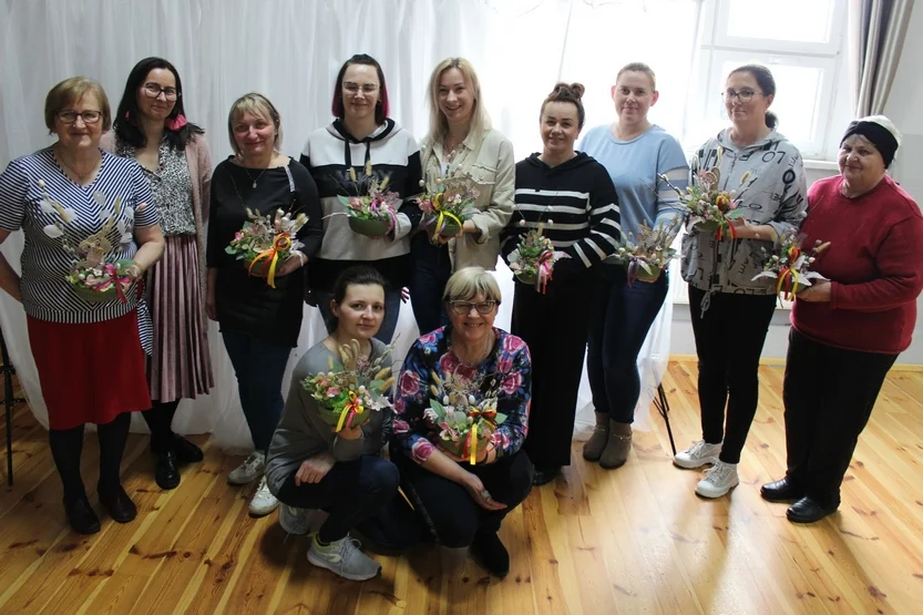 - Panie wykonały stroiki świąteczne z figurką wielkanocnego zajączka. Kompozycje zostały przyozdobione gałązkami, kwiatkami, baziami oraz dekoracjami wielkanocnymi - opisuje GOK.