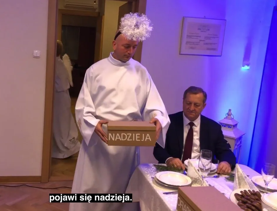 W projekcji dostrzecmożna dwa światy: realny i metafizyczny, które łączą się ze sobą aby podzielić się dobrym słowem, opłatkiem, nadzieją i miłością.