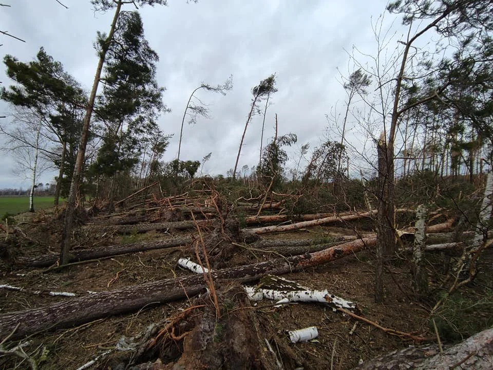 Zniszczenia w lasach w powiecie pleszewskim po wichurach