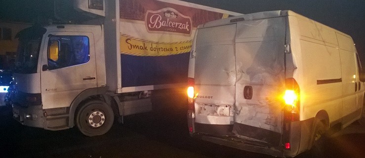 Do zdarzenia doszło ok. godz. 17.00. Dostawczy bus przywiózł towar do sklepu znajdującego się przy skrzyżowaniu w Kościelnej Wsi. Gdy wyjeżdżał na drogę, w jego tył uderzył ciężarowy mercedes.