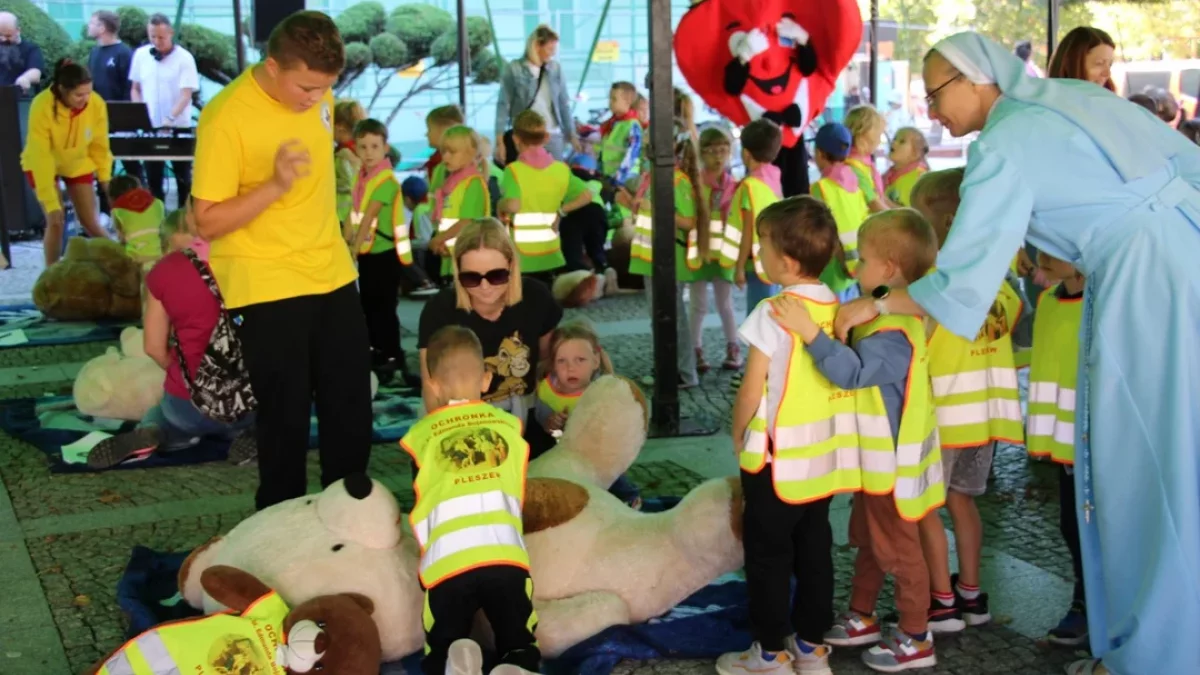 Dziś - 20 września - w Pleszewie odbyła się niezwykła akcja. Uczniowie pleszewskich szkół i przedszkoli po raz kolejny uczyli się jak przeprowadzać resuscytację krążeniowo-oddechową. W sumie w wydarzeniu udział wzięło ponad 5.000 osób, ponieważ równocześnie z tymi, którzy pojawili się w centrum miasta, resuscytację na fantomach prowadzono w placówkach oświatowych miasta i gminy Pleszew, a także instytucji publicznych.