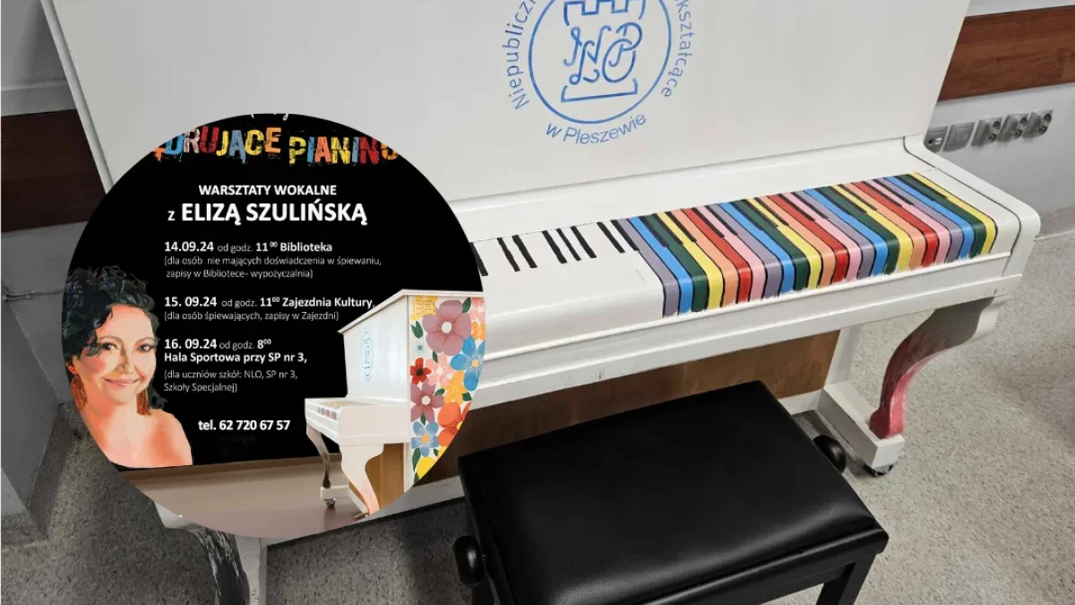 „Wędrujące Pianino”, organizowane przez Fundację Moniki Matyjaszczyk, to w tym roku nie tylko muzyczne przystanki z odrestaurowanym instrumentem, ale również warsztaty, na które zaproszeni są wszyscy mieszkańcy Pleszewa.