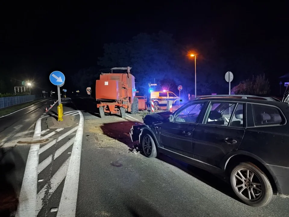 Dzisiaj o godz. 0:30 w Dobrej Nadziei, w gm. Pleszew, osobówka zderzyła się z kombajnem.