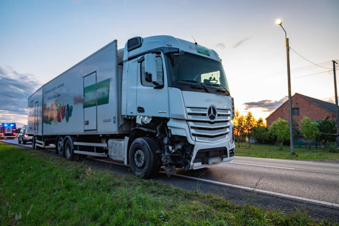 Do wypadku doszło na prostym odcinku DK 12 w Łobzie w powiecie jarocińskim. Ciężarowy mercedes z naczepą uderzył tam w osobowego opla. Osobówka siłą odrzutu wpadła na pobocze, a następnie auto dachowało.