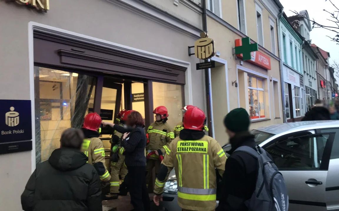 Jak doszło do uderzenia auta w budynek banku na rynku w Pleszewie?