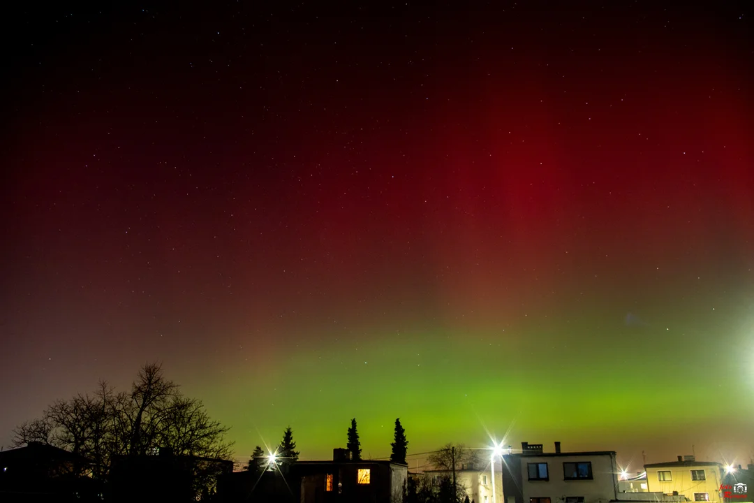 Zorza polarna nad Pleszewem. Wyjątkowe, barwne widowisko na niebie